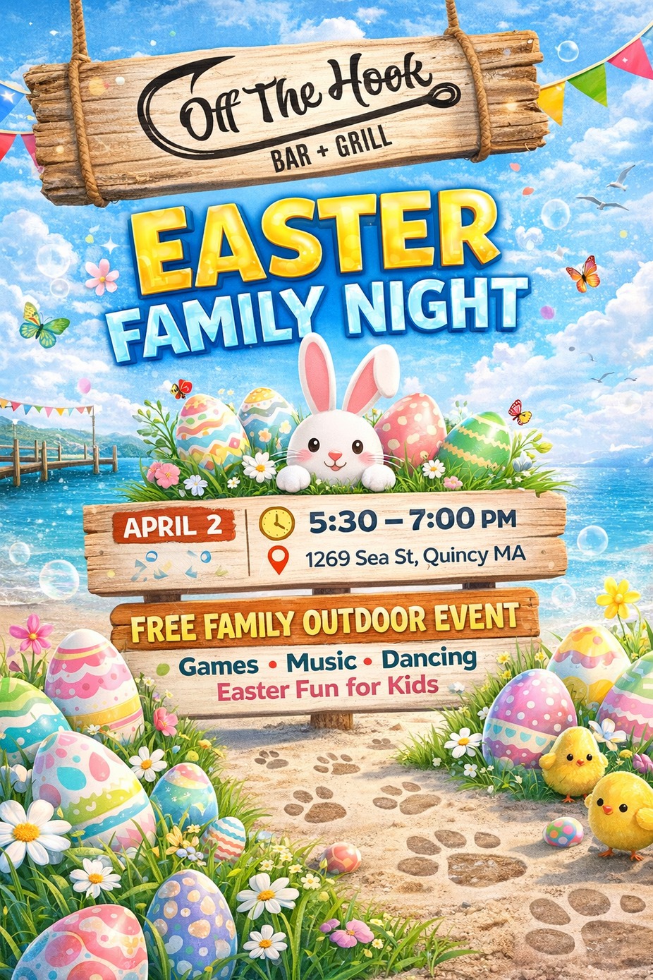 The Bunny will arrive promptly at 5:30pm and this is an outdoor event, so dress accordingly. No purchase of food or beverage necessary but greatly appreciated!